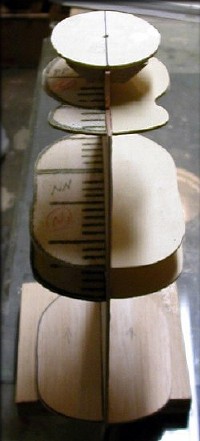 Alignment and SymmetryI'm doing several things on the King Air to insure that those items that there are two of, such as the engine nacelles, are the same. I'll shape the right nacelle first, check it against my drawings for accuracy, and then use those patterns to verify the shape when I make the left nacelle. Both engine cowlings will be made from the same plug/mold, so the symmetry of those parts is guaranteed. (photo at right) |