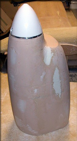The cowling plug is nearly ready for a little filler, and the final glassing. The surface here is a very tough epoxy-microballons mixture. |