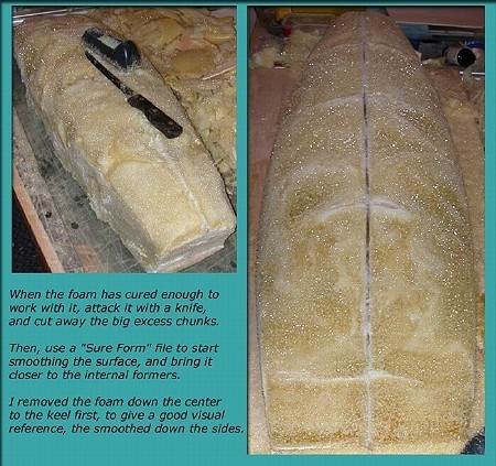 Major dings or cavities were filled with more of the same foam, then re-sanded, before being glassed.