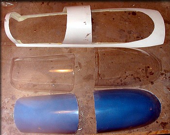 After the molds were created for the composite canopy, fiberglass canopies were produced, which could be used alone, by the non-scale modeler. For those more interested in scale, clear parts were vacuum-formed. (See the main Berkut article for photos of those molds and parts.) Below, I've shown the simple assembly method for a scale look.