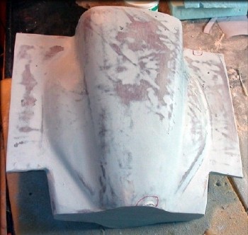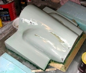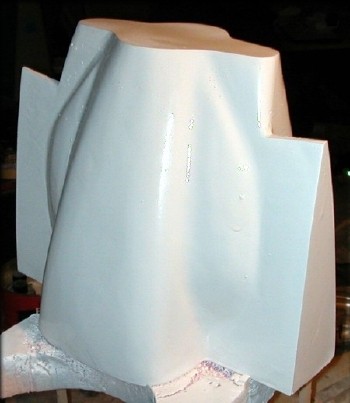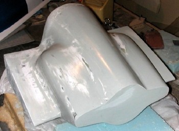 After a little more shaping, it starts to look right. This cowling is unusual, in that in includes a wing-shaped part on each side.