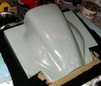 I've been wet-sanding the plug, and although it's dry in these photos, you can see that the surface is beginning to be smooth enough to shine. That's what you want, over the entire surface. (if that's what the original parts look like)