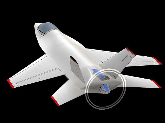 The fuselage was very slightly widened, so that the eingine could be rotated to about 80 degrees, so it could be concealed.
