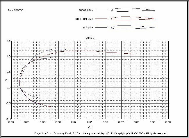 Aided by several friends, research at the expected Reynolds numbers caused me to select the Selig 6062 as the wing airfoil. All of the vertical and horizontal tail parts use the NACA 0006.