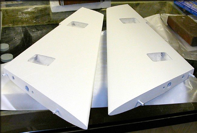 Molded servo hatches will be included in the final kit. (wing bottom)