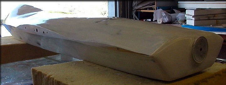I decided to mold the entire aircraft. Here is the combined plug for the vertical fin/rudder/dorsal fin