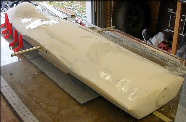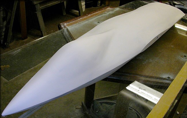 The shapes have been checked over and over, and it's now close enough that I'm ready to start working on the final finish. Since this airplane has some sharp edges, I'll be using tooling resin as the final surface. This is very tough to sand, but it's a little extra insurance that the plug won't be damaged when I make molds.