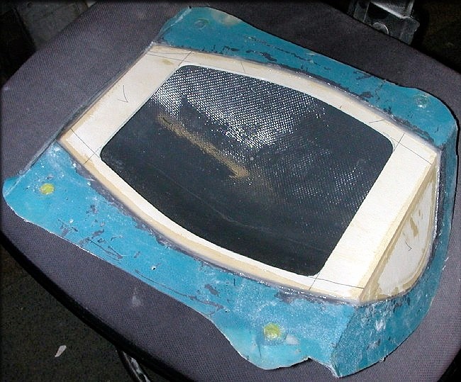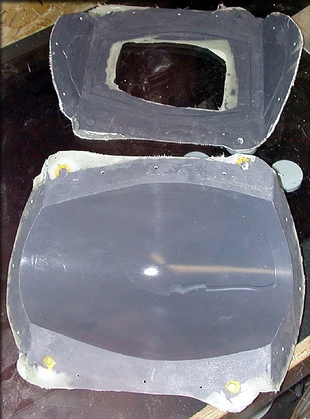 Another canopy was made in the "bowl" or top part of the canopy mold. This time, I didn't bother with the paint, since I know it works. This piece was made with two layers of 2 oz cloth, followed by 1 layer of 6 oz. cloth. And, instead of a molded bottom, I simply made a frame from 1/8" lite ply.
