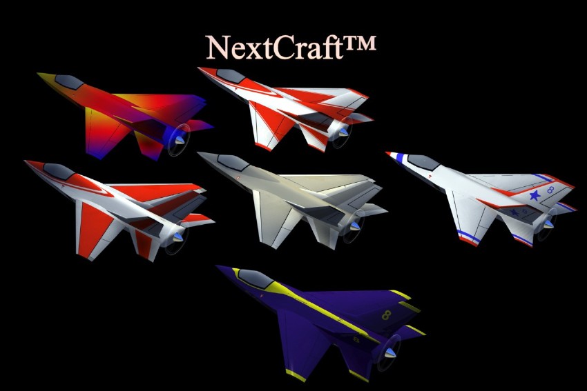 Giving some thought to paint schemes. The one in the upper right hand corner is our test flight scheme, similar to Edwards AFB schemes. (I planned to offer the kit in "raw" glass and/or in white or light gray primer.)