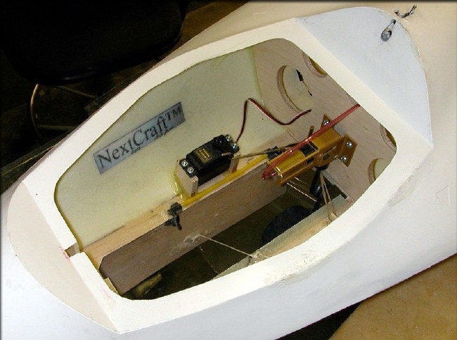 Final tail parts are being vacuum bagged, and I've started on the RC installation. Here's the nosewheel steering servo.