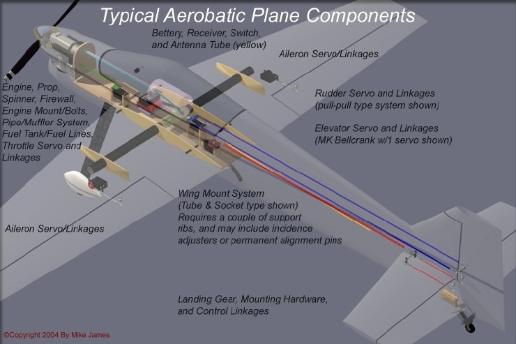 The design is suitable for typical F3A engines, such as the YS 1.20, YS 1.40, and equivalents. It's fuselage has been redesigned for better knife-edge performance, the wing's aspect ratio is slightly lower, and all the control surfaces are large, to allow for use in "Artistic Aerobatics". The internal layout is similar in many respects to ZN-Line type ships, including the optional use of a muffled pipe, enclosed in a separate pipe tunnel below the fuselage floor. I won't be going any further with this design, but it gives an idea of what's required for F3A competition.