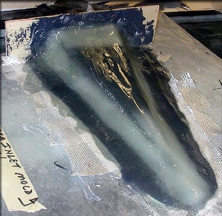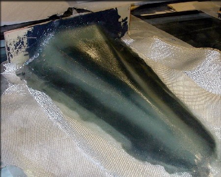 Again, I start by placing small bits of resin-saturated cloth in all the sharp corners,