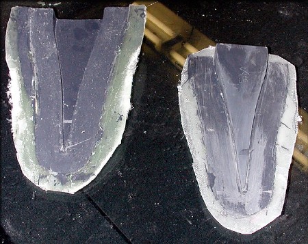 First, if I Ire to use a male form instead, the "shiny" side would be the one visible on the outside, and makes more sense aerodynamically too, since the air has a smoother surface to flow over. Also, when the part is made over a male form, it allows the addition of a fillet in the part, to strengthen it, and leaves the rough side where it should be, as a gluing surface. So, using our female mold, I used tooling resin to build a male tool, and that's the one I'll use on the actual aircraft. Live and learn!