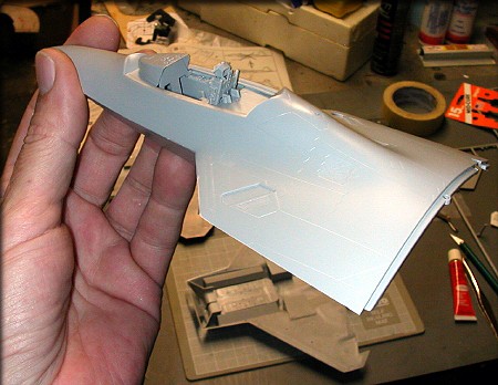 The cockpit tub has been glued into the upper fuselage, and fits well.