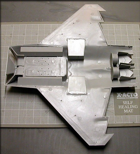 Landing gear bays, weapons bays, intake "ducts", and exhaust parts are installed in the lower fuselage.
